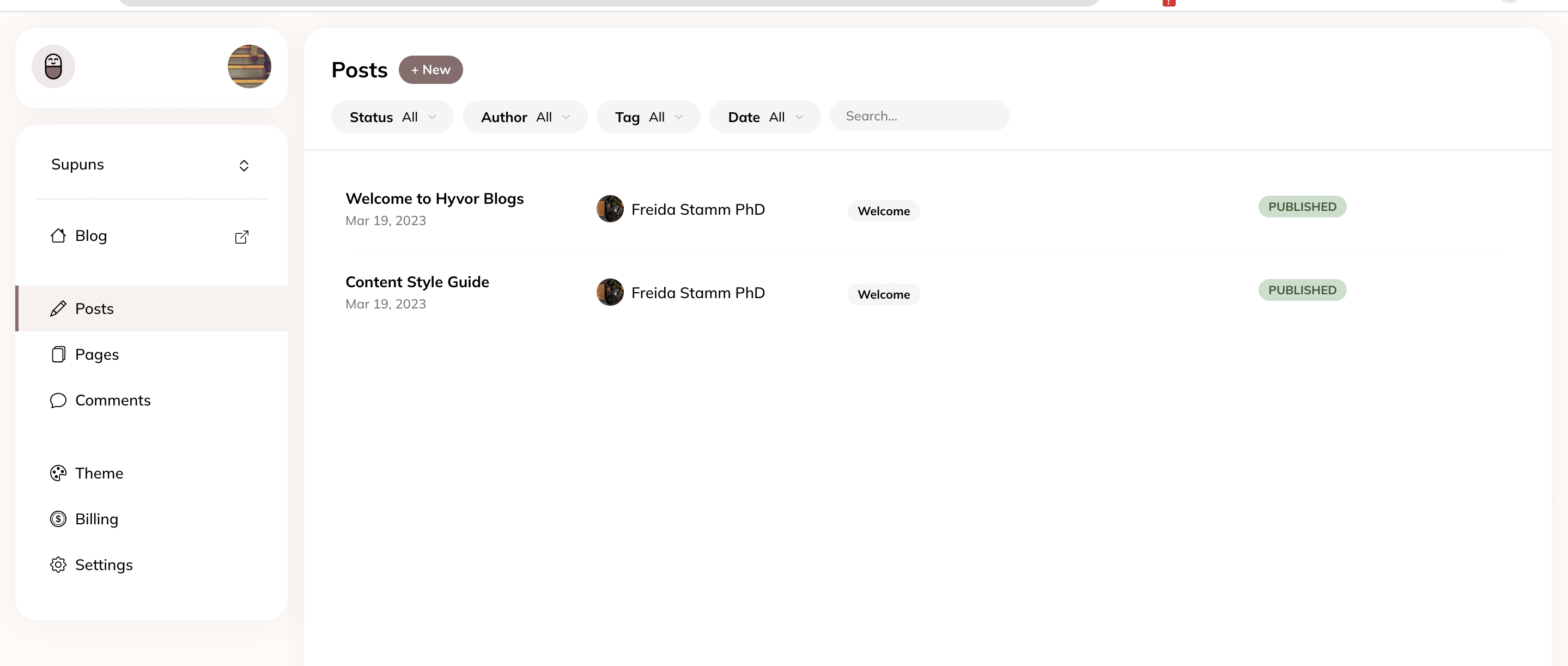 New post list view: